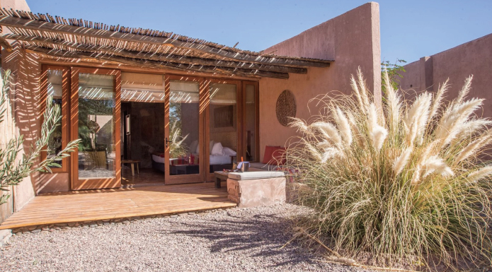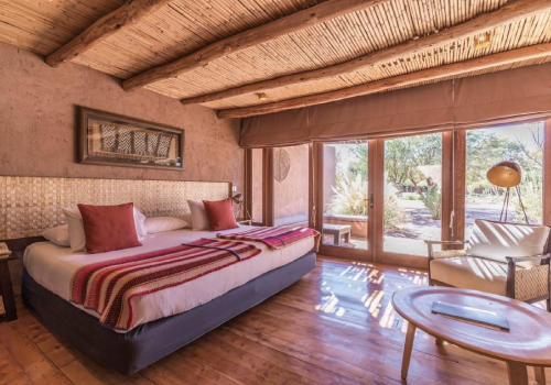 Cumbres San Pedro de Atacama 飯店坐落在阿塔卡馬沙漠近郊,客房擁有別緻的赭石色調裝飾,配備了暖氣、空調、衛星電視、景觀陽台和享有景觀的室外淋浴,飯店內的餐廳使用當地食材烹製國際菜餚;遊客可以在酒吧、俯瞰花園的露台上或泳池邊的日光躺椅上享用飲品,是阿卡塔馬放鬆身心的理想住所。