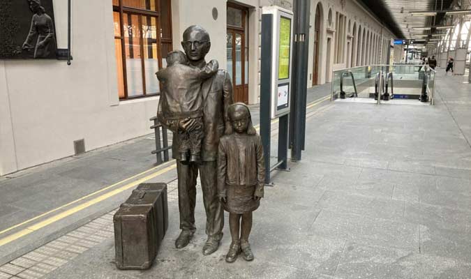 布拉格火車站於1909年正式開業,有著宮廷建築的藝術氛圍,當它濃縮成一個人孔蓋,就成為布拉格的「文化圖章」。 您在月台上看到捷克高鐵CD class680時,也別錯過月台上的人像銅雕,這訴說著這裡發生在1939年,一位Nicholas Winton先生的感人故事。 他以自己有限的力量,拯救了669個小孩送往英國,免於戰爭的傷害與恐懼,儘管如此,仍然有15131位捷克斯洛伐克的小孩無法倖免於難,在集中營中屠殺。救苦救難的人道精神,不分國籍也不分種族,令人肅然起敬!雖然已時過境遷,今日的火車川流不息,但銅雕的人道精神永恆不死!(資料來源 蘇昭旭 著 環遊世界鐵道之旅一書)
