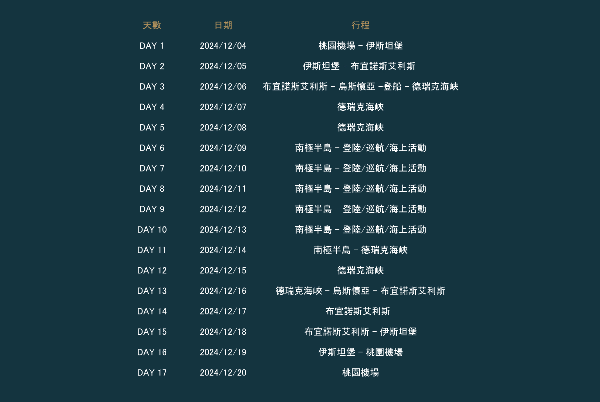 南極行程特色 南極,地球上的最後一塊淨土, 由全世界共同守護著,它不屬於任何國家, 人類只是南極的過客,能夠帶走的, 是一輩子難忘的回憶,以及再度返回南極的渴望。