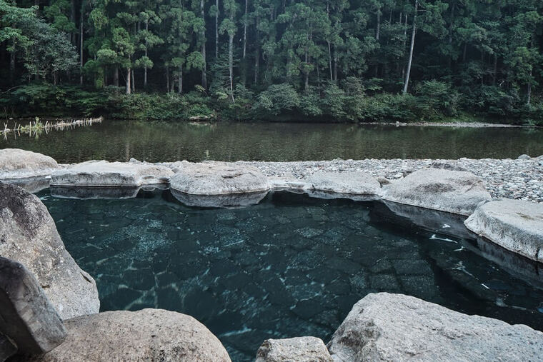 位於熊野本宮溫泉鄉之一的「川湯溫泉」,超過70度的源泉從川底源源不絕的湧出,因而得名。只要往河床下挖掘就有溫泉湧出,是日本相當罕見的景點。