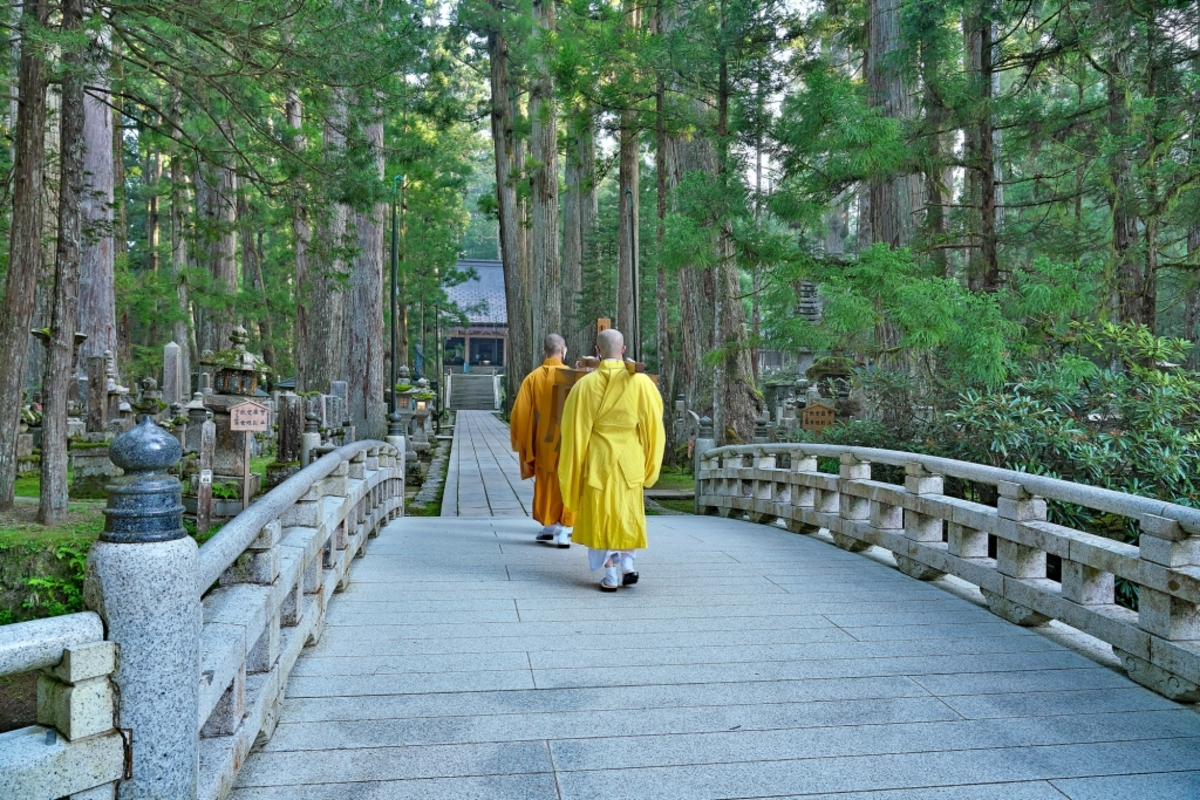 是大師信仰的最重要的高野山的中心地之一。2公里長的參拜道,通往弘法大師最後入定的靈廟,沿途會經過超過20萬座墓碑與深具意義的紀念塔。走過這條兩旁杉樹羅列的小徑,彷彿翻閱了一頁頁的日本史。