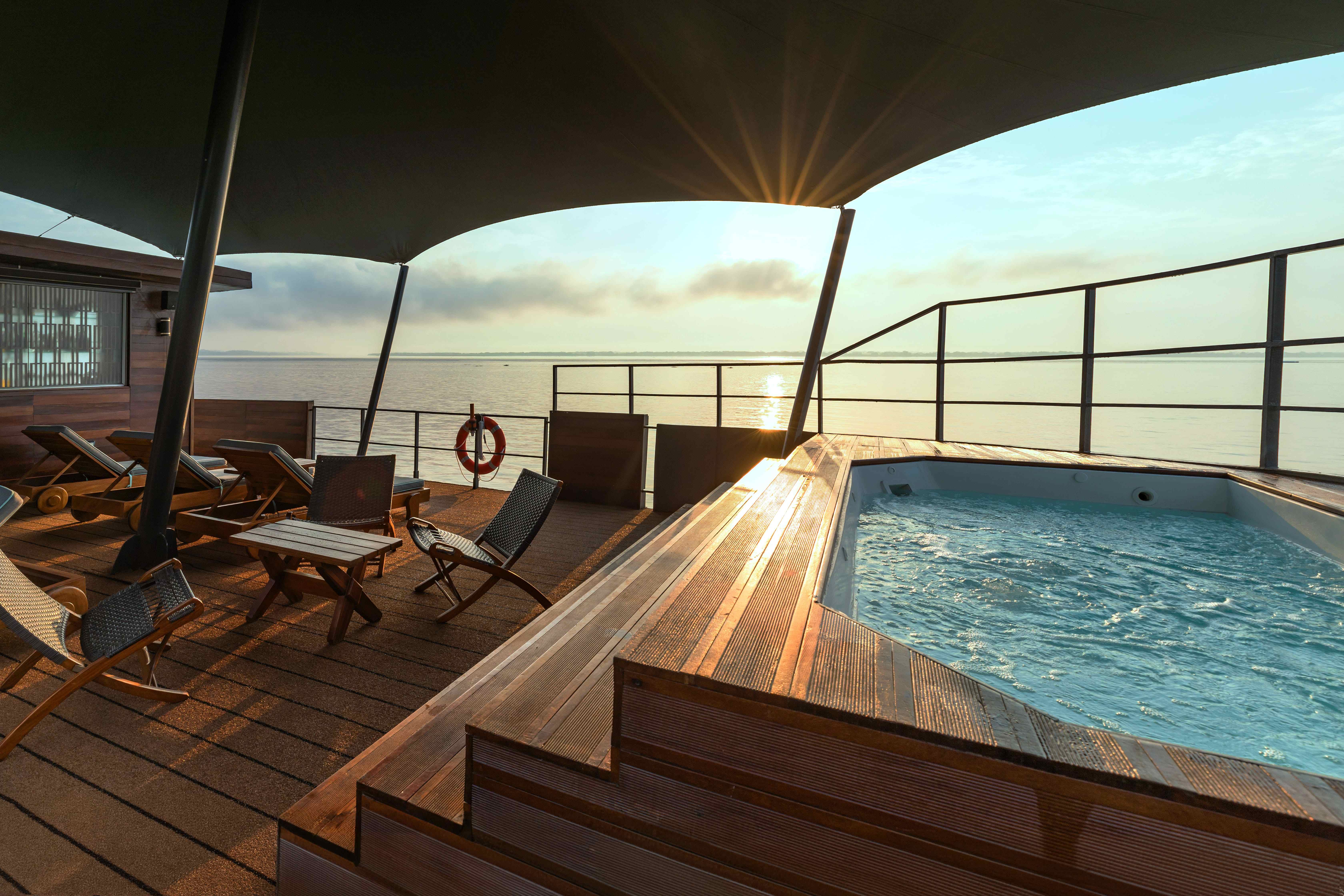 Aria Amazon是秘魯亞馬遜河上頂級豪華河輪,由秘魯建築師Jordi Puig設計,船上僅 16 間設計的套房,每房配落地窗直瞰河流與雨林,不僅傳遞了亞馬遜的寧靜感,更提供您如五星級飯店般的住宿體驗,在4天3夜的亞馬遜探險之旅,享受專屬於您的靜謐時光。