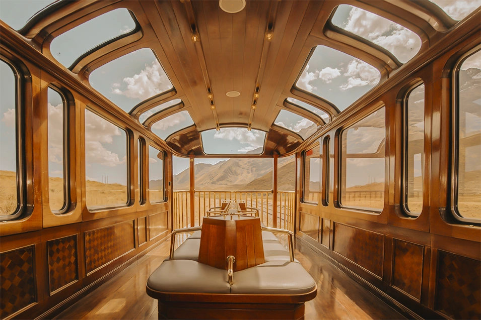 的的喀喀號景觀火車提供從庫斯科到普諾的極致旅程,以1920年代普爾曼風格裝潢,宛如電影《東方快車》的復古場景,途經海拔超過4300公尺的拉亞隘口,穿越金色平原、羊駝群、雪山與無垠天空,完美結合舒適、美食與文化元素。
