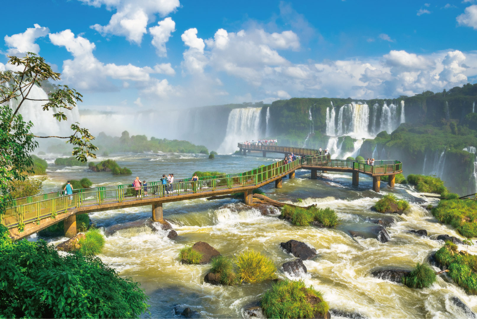 這片壯麗的水系跨越巴西與阿根廷邊界,由 275 條大小不一的瀑布組成,全長約 2.7 公里,氣勢磅礡,水聲如雷,最高處的水流從 82 公尺的高度傾瀉而下,形成漫天水霧,陽光映照下常可見到七彩虹光,為這片純淨天地更添神秘與夢幻。