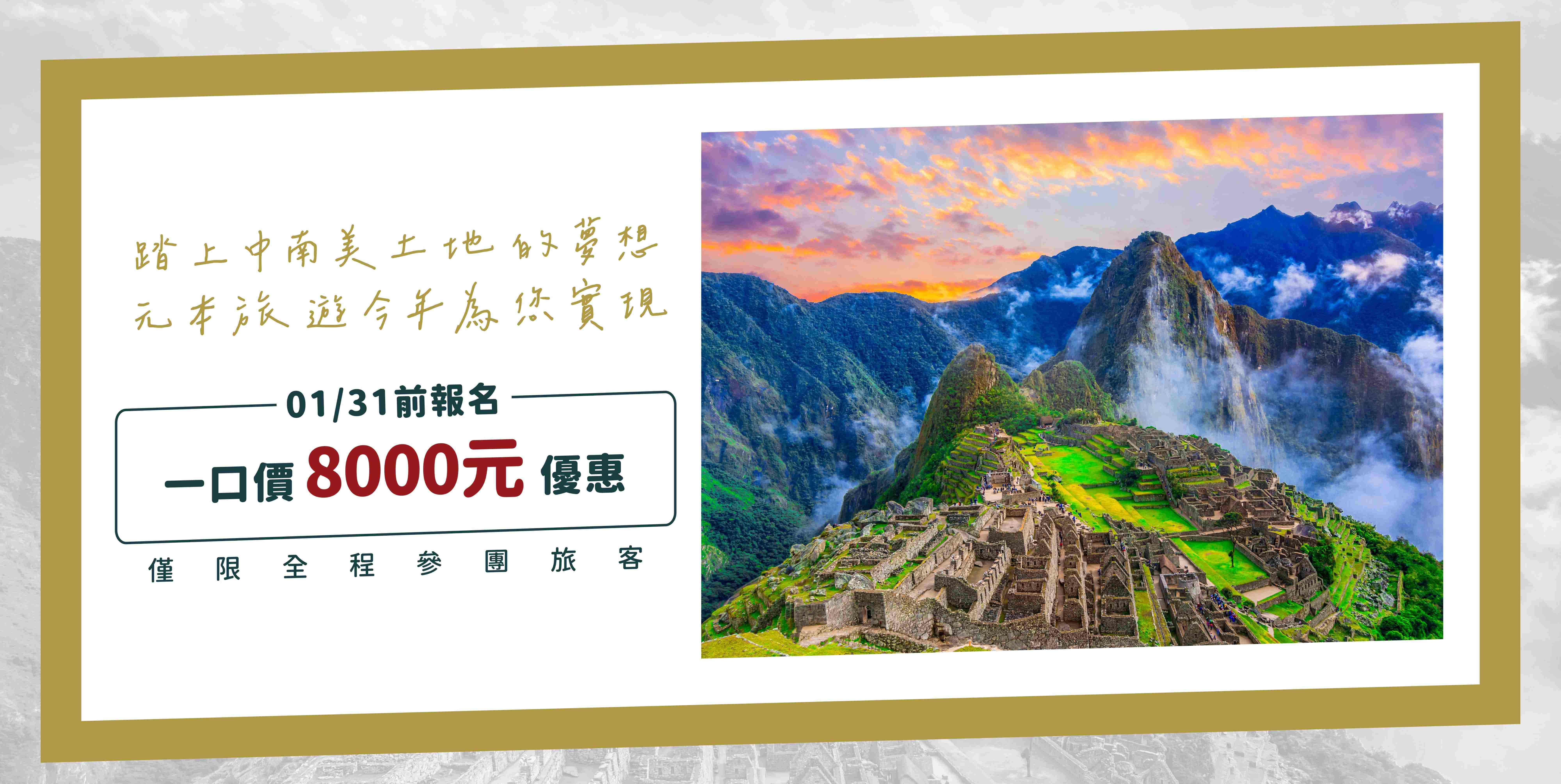 遠離喧囂忙碌的生活,轉換一下心情,全新旅程就此展開,隨著飛機起飛,我們即將前往南美洲千年古文明探索之旅,享受這最令人悸動的假期。