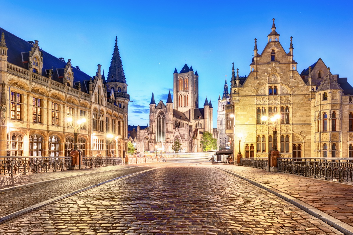 ◆根特老城區:根特是一座融合中世紀風華與現代活力的城市。12至15世紀時,根特因羊毛與亞麻貿易而成為歐洲最富裕的城鎮之一,也留下了宏偉的哥德式建築與運河景觀。市中心的聖巴夫主教座堂收藏的《神秘羔羊》是藝術史上的珍寶。高聳的根特鐘樓與聖尼古拉斯教堂並列構成壯麗的「三塔天際線」。如今的根特兼具歷史與青春氣息,運河兩岸咖啡館林立,夜晚燈影倒映水面,浪漫而充滿文化氣息。