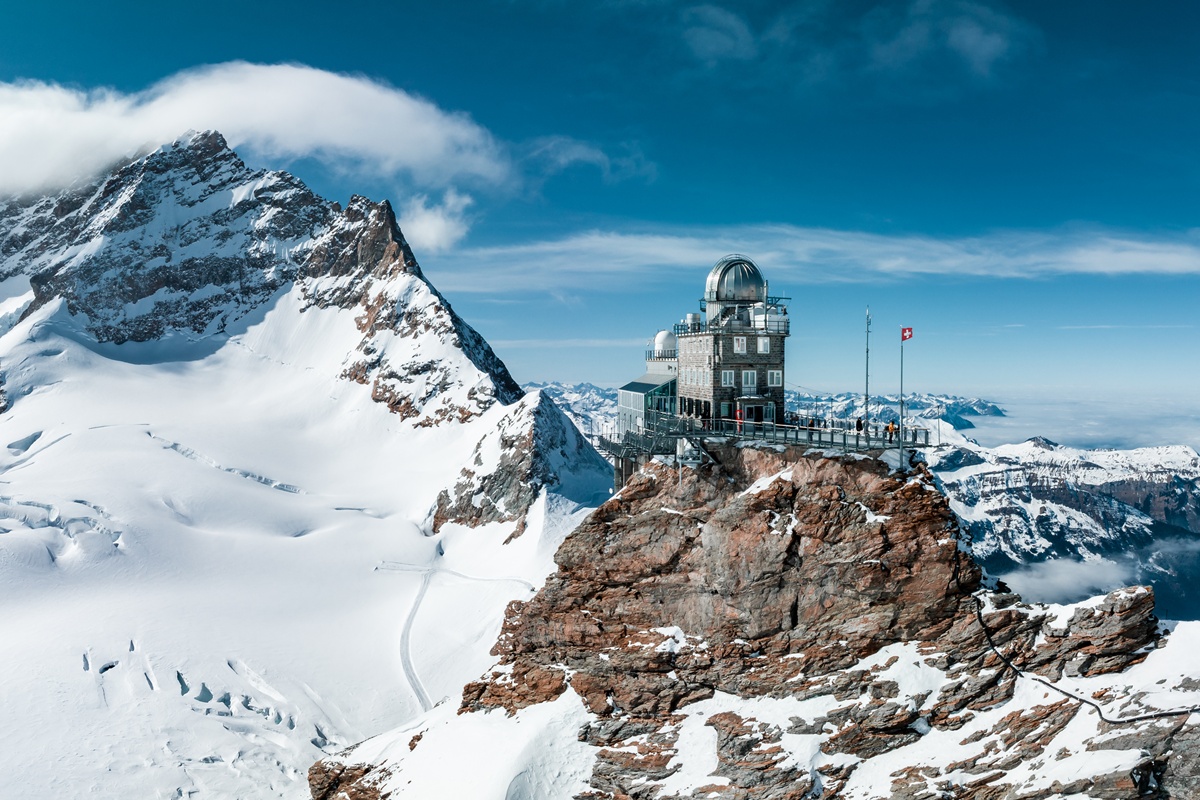在少女峰車站,可搭乘高速電梯登上3571公尺高的斯芬克斯觀景台,俯瞰阿雷奇冰河的壯闊銀白世界,遠處的少女峰與僧侶峰如忠實守護者矗立其間,令人心生敬畏。隨後可前往冰河內部的冰宮,欣賞精雕細琢的冰雕藝術,或在阿爾卑斯震撼體驗館深入了解這片山脈的歷史與自然魅力。