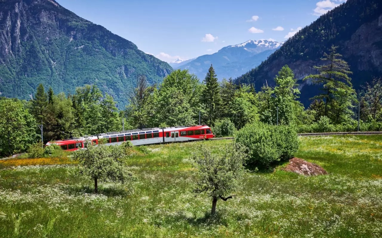 從蒙投出發,黃金列車緩緩離開萊夢湖畔。這一段是瑞士第一條將法語區與德語區山地直接連接的觀光路線。當時的貴族與旅行家熱衷於從日內瓦湖搭車北上至伯恩高地避暑,因此這條路線便成為優雅旅遊的象徵。此外,這個區段也是整個路段中風格轉換最明顯的區段。鐵軌開始爬升,沿著山壁盤旋,城市、湖水、花園一層層在車窗下沉。幾分鐘前還像坐在地中海岸邊,接著便進入瑞士內陸典型的山村景色。