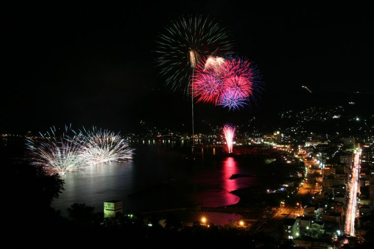 【伊東夏季花火大會】這是以「按針祭」為核心的系列盛事。每年七、八月期間,會先行舉辦多場「夢花火」作為序幕,每場規格約一千發,適合溫泉旅客就近觀賞。全年的重頭戲則是固定於 8 月 10 日舉行的「按針祭海上大花火大會」,其施放規模高達一萬發煙火,為伊豆地區之冠。