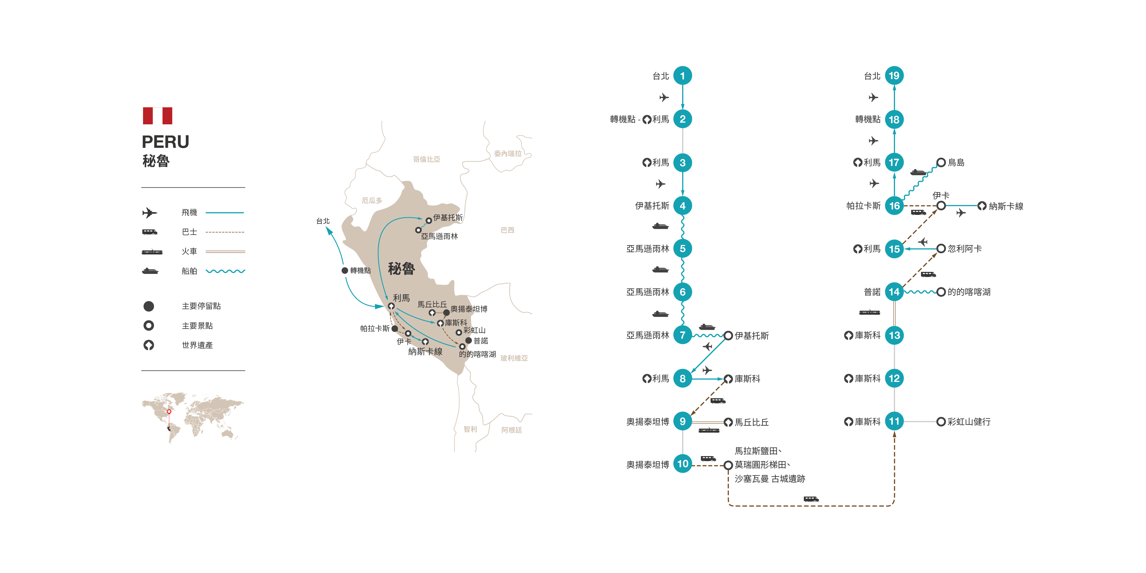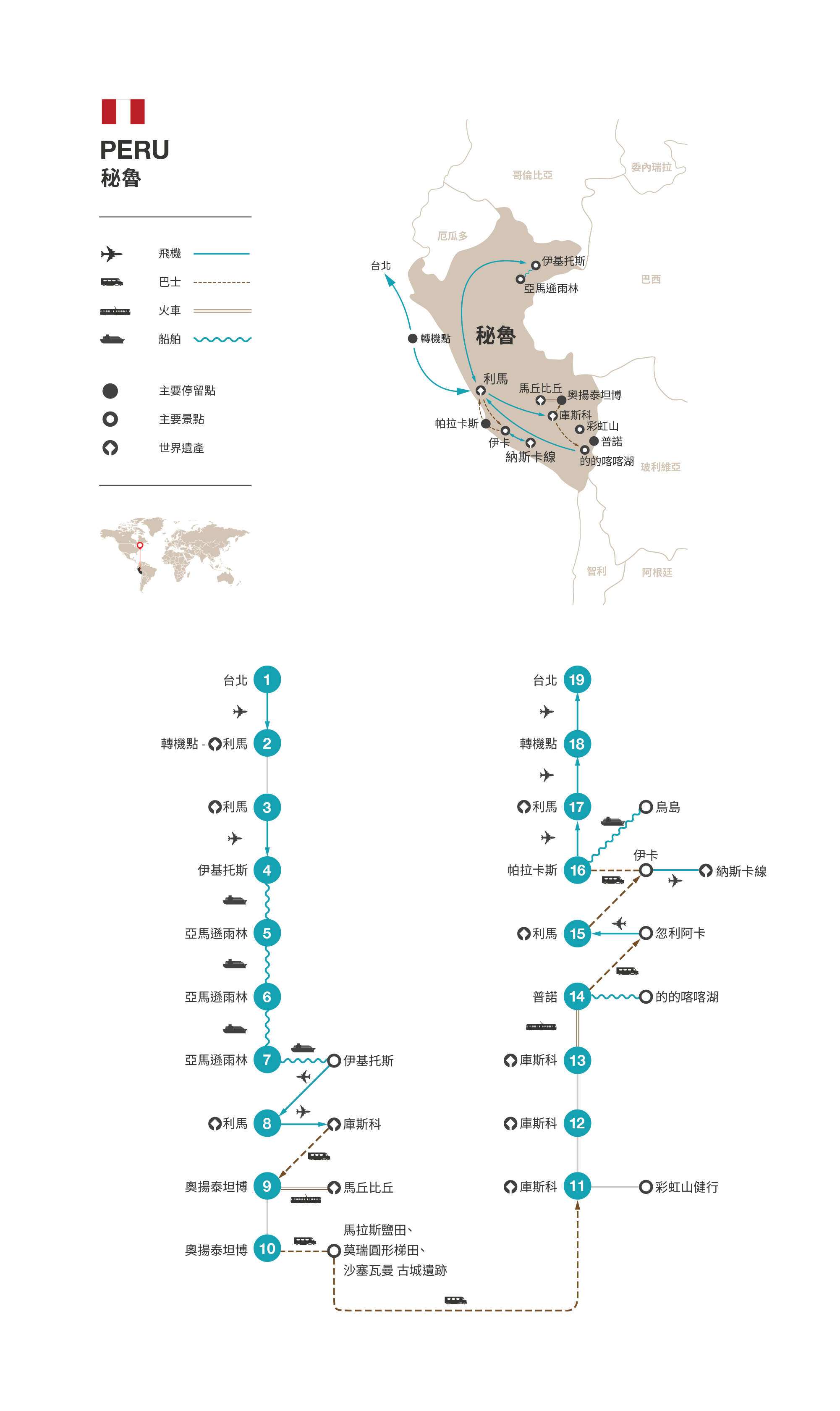 1.此團進入秘魯持台灣護照之旅客免觀光簽證。