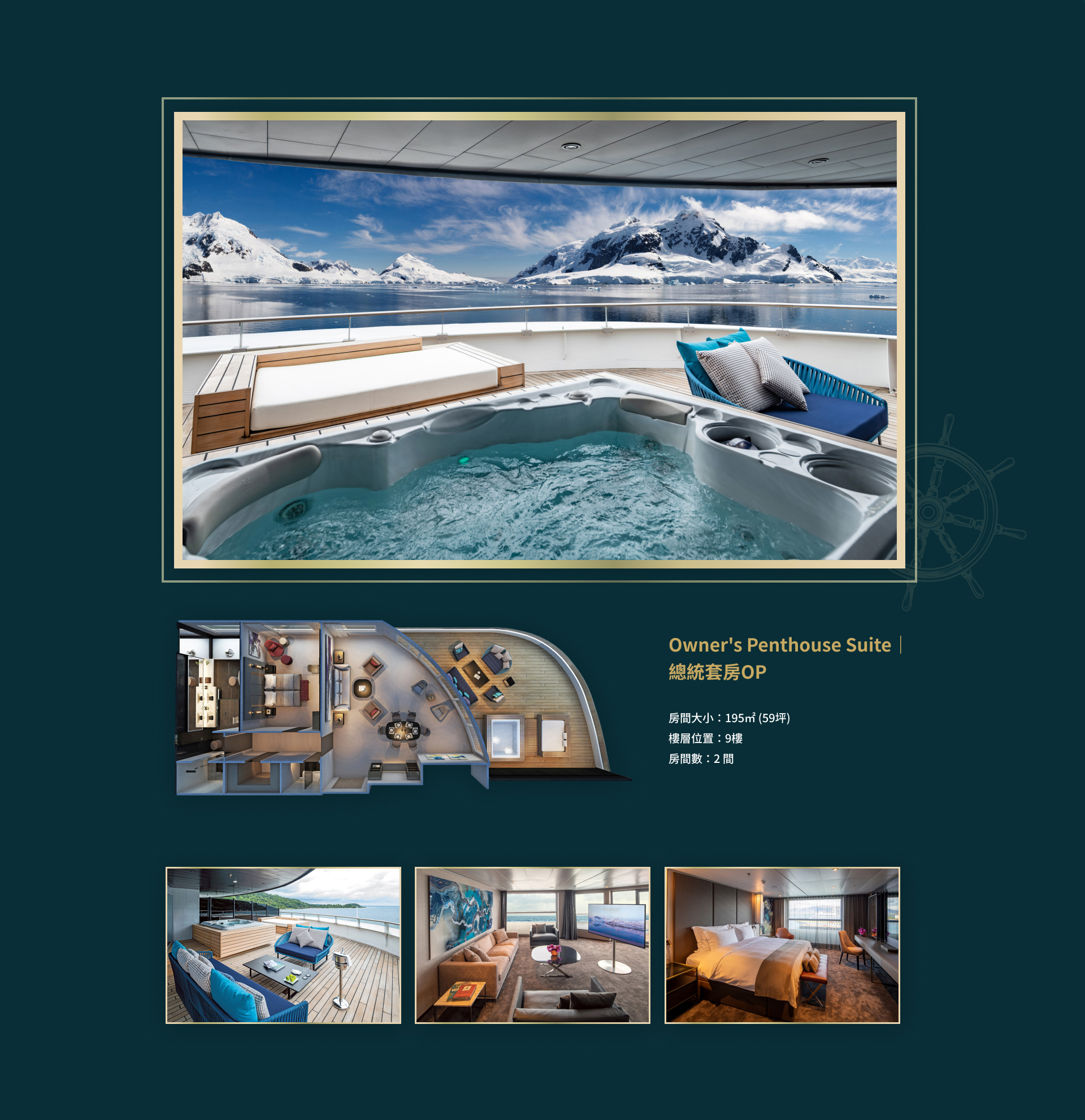寬敞舒適的空間及優質設備,帶您巡遊南極海洋