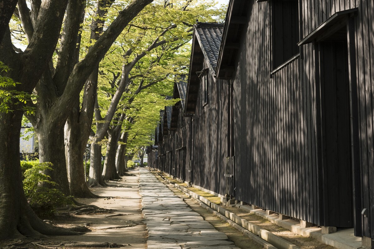 山居倉庫是建於1893年的米倉,雙層屋頂取代隔熱材,內側並種有櫸樹以遮蔽西曬、強風,傳統巧思及機關繼續保護白米不受濕氣、熱氣影響。綿延的倉庫群面對著河岸,三角形屋頂、白牆與倒映在河面上的倉庫,面對最上川的碼頭。還有運米的小鵜飼船等,有趣的風景眾多。倉庫後方則有櫸木行道樹,與黑板牆、石板路相映成趣。直到今天還是能想像當年運米出港時盛極一時的風光。