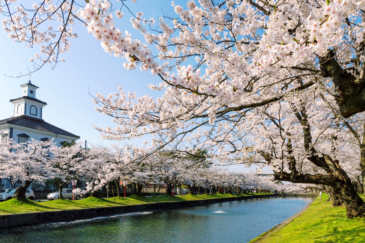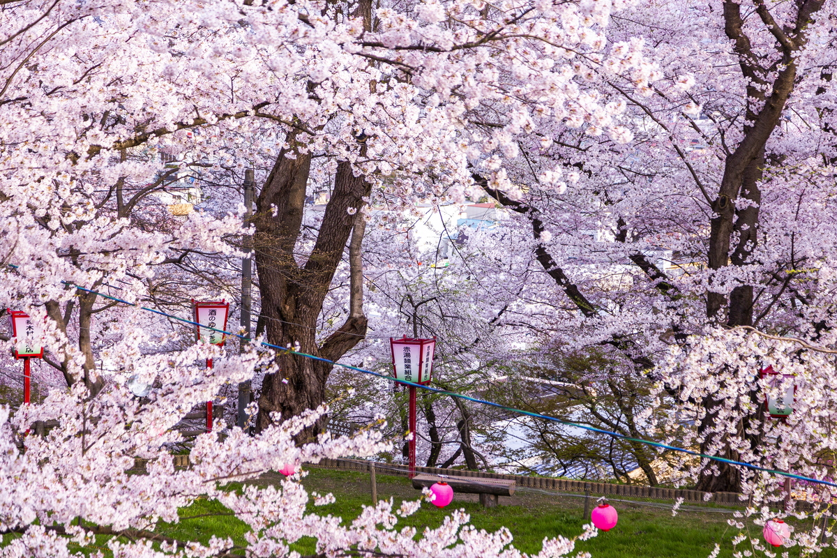 坐落在鶴岡城舊址,這裡除了有730棵染井吉野、垂枝櫻樹和八重櫻等櫻花樹之外,護城河和城址也值得一看。是「日本櫻花名勝100選」景點之一。每到櫻花盛開的季節,還能享受日本茶和日本點心,參加其他的季節性活動。