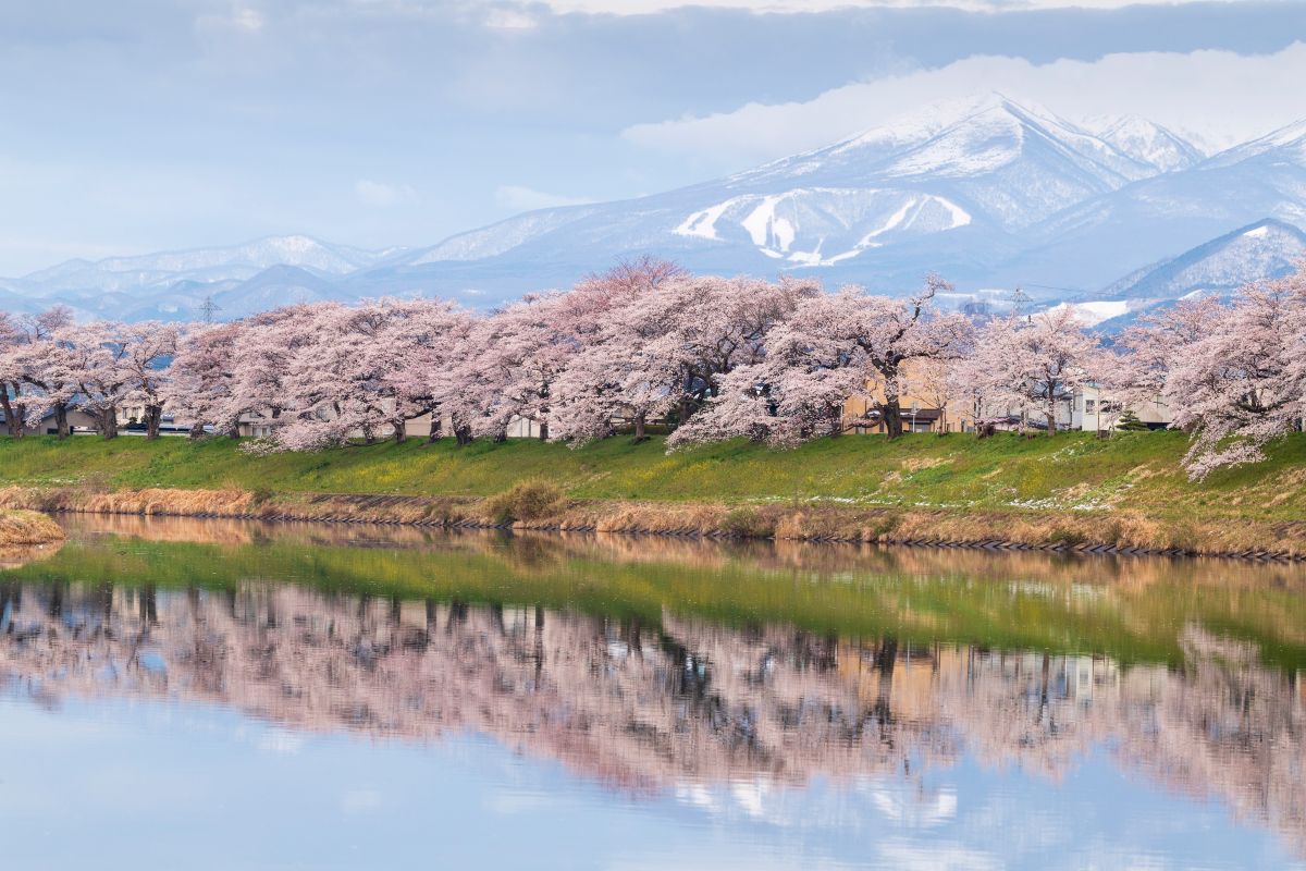 綿延約八公里長,流經大河原町的白石川堤是東北春天賞櫻名勝,這裡種植有1200棵的櫻花樹葉染吉櫻,櫻花綻放時,除了可以觀賞白石川優美的景致外,還有機會遠眺殘雪未融的藏至連峰。