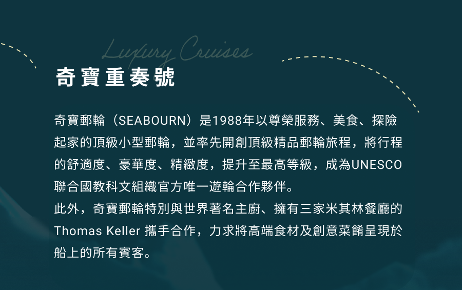 SEABOURN 為 UNESCO聯合國教科文組織世界文化遺產 官方郵輪合作夥伴