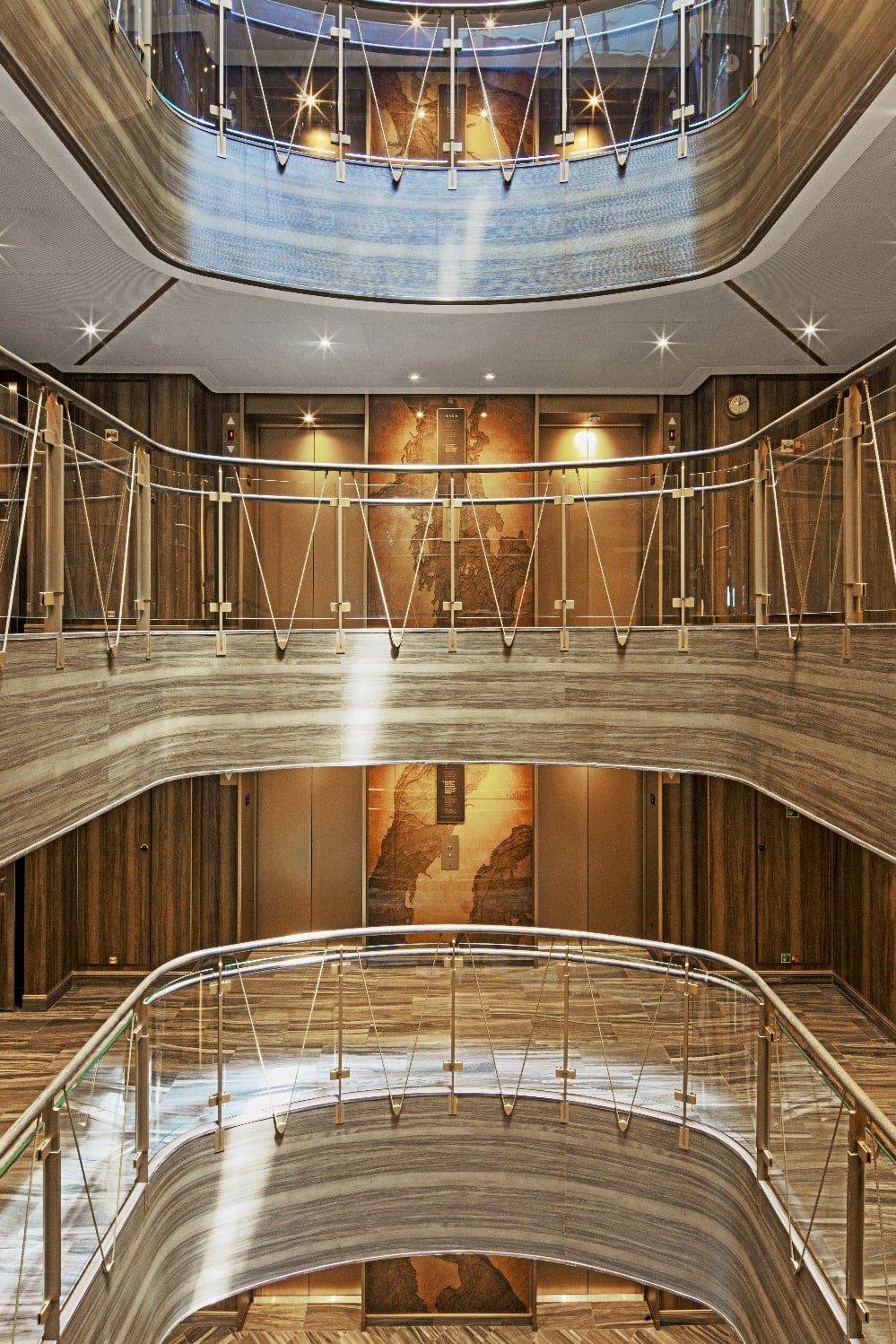 設有虛擬壁爐以及以大自然和海洋為色調的現代自然風格家具, 並有四個大型觸摸屏顯示航程信息及照片。