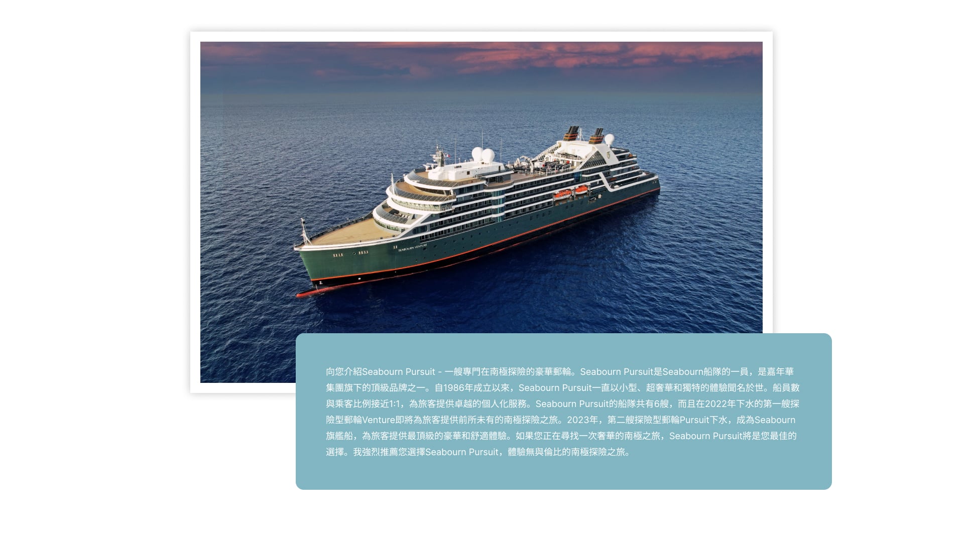 寬敞舒適的空間及優質設備,帶您巡遊南極海洋